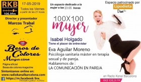 El 17 de mayo de 2019 , He tenido el placer de colaborar en directo con la emisora deRADIO KANAL BARCELONA, en el PROGRAMA 100X100 MUJER, dirigido por Isabel Holgado. para dar unas pinceladas sobre LA COMUNICACION EN PAREJA.